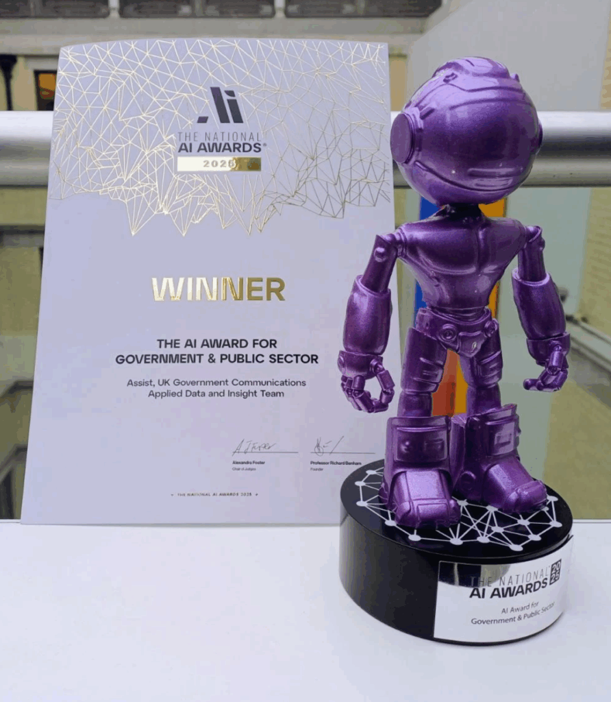 Government Communications’ AI tool, Assist, recently won the AI Award in the Government and Public Sector category at the National AI Awards. The National AI Awards celebrates those developing pioneering technology, applying AI in ways that deliver public value, and ensuring that innovation is built on strong foundations of trust and responsibility.